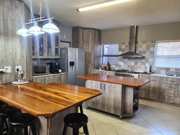 The property offers beautiful finishes and excellent flow. Gourmet open plan kitchen with wooden top finishes and a separate scullery for all your appliances.