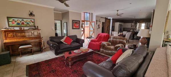 The Entertainment room oozes luxury, with stacking doors that fully open up to a built-in braai with a perfectly manicured garden and a sparking swimming pool