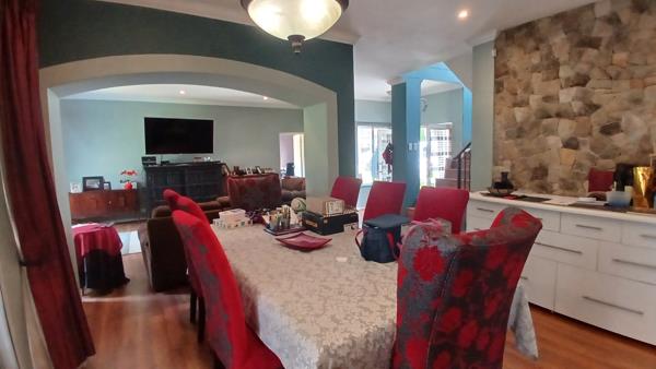 Located in a secure Estate in Melodie, Hartbeespoort, this 336sqm 4 bedroom, 3 bathroom double storey home exudes elegance and space! This immaculate home has 4 large bedrooms upstairs (2 en suite large bathrooms), a 3rd bathroom with an open landing with centralized Air conditioning, cooling the entire house.