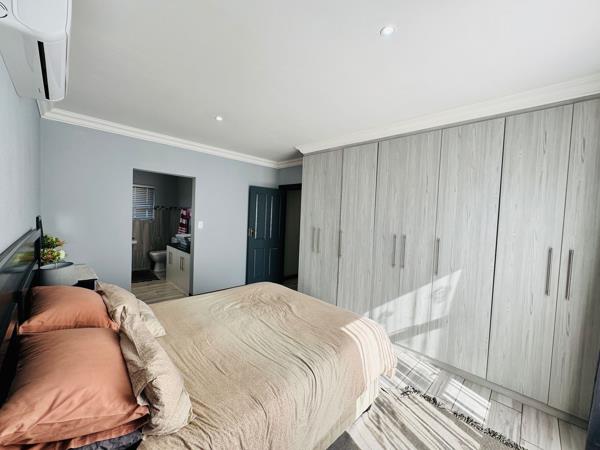 The main bedroom is a true retreat, featuring a full en-suite bathroom, built-in cupboards, and a fitted air-conditioner for year-round comfort.