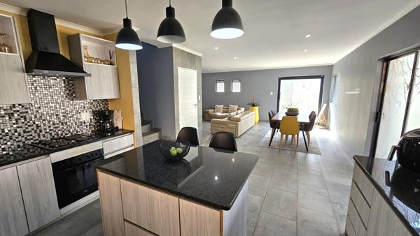 The ground floor features a bright and airy open-plan design, including a modern kitchen with a separate scullery, flowing seamlessly into the lounge and dining areas. Glass sliding doors lead out to a covered patio, and a neat, low-maintenance gardenideal for relaxed weekends and entertaining.
