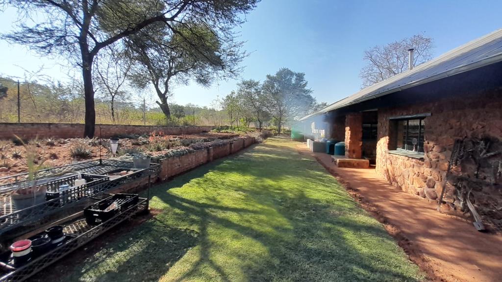 The borehole is strong with Eskom electricity as well as a 12KVA generator which is connected to the DB Board. There is a vegetable tunnel, triple carport, and 5 Jojo tanks that catch rain water. The outside walls of this quaint home are layered with local stonework from the area, giving the property a bush home feeling. The property is completely fenced, has an electric main gate and beams all around the home ensuring complete peace of mind.