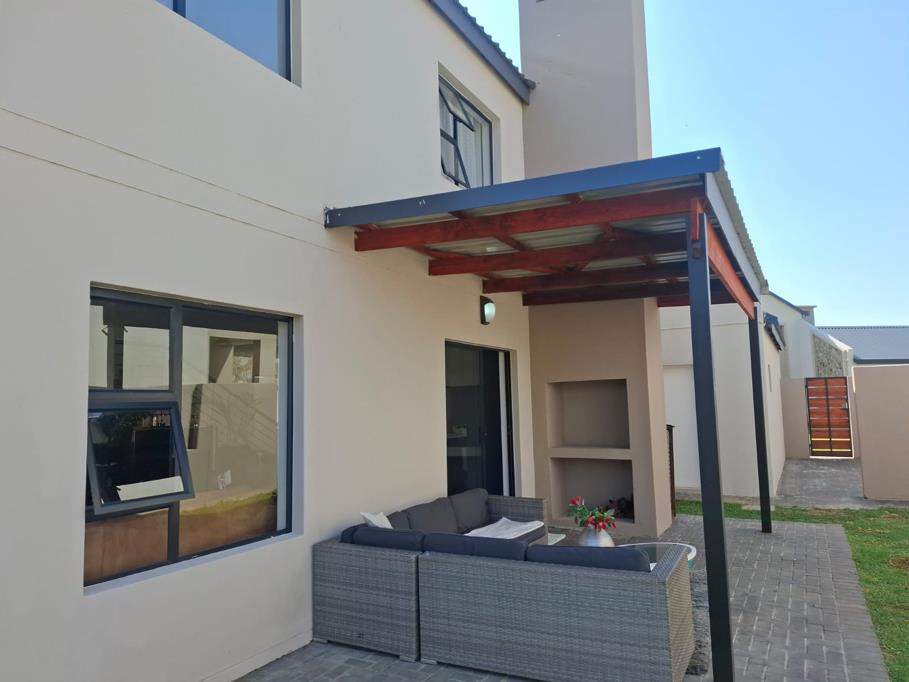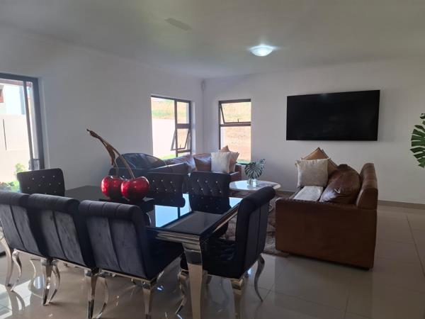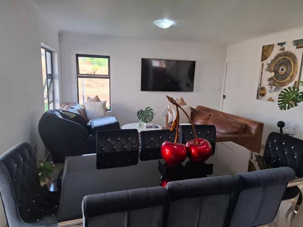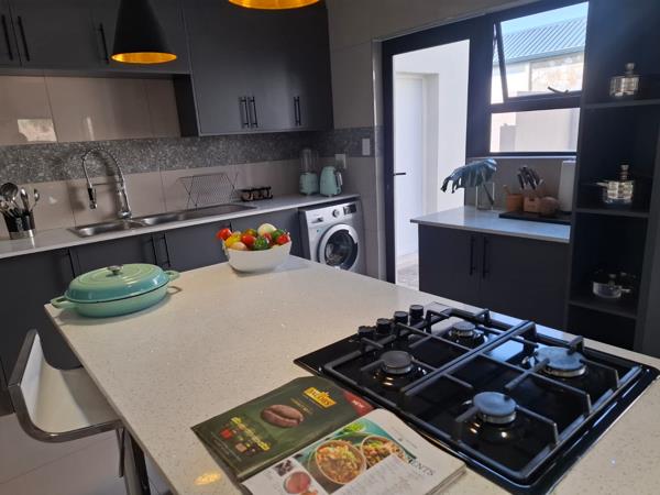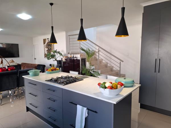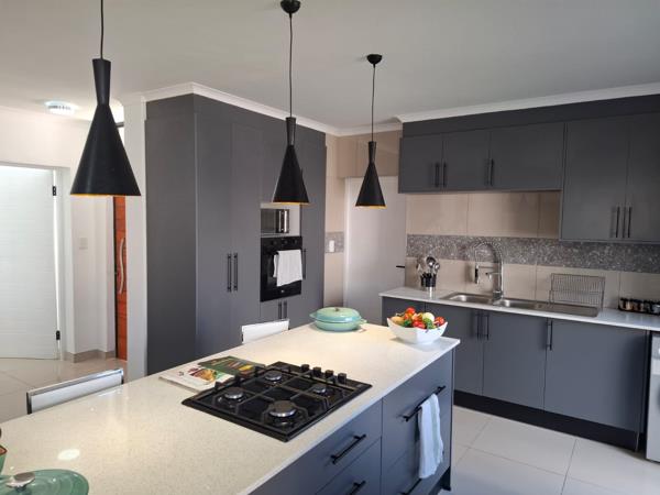 This home offers a seamless open-plan design with a stylish kitchen leading to the dining area and lounge. Sliding doors open onto a covered patio with a built-in braai ideal for relaxed entertaining. The compact, easy-to-maintain garden makes this a perfect lock-up-and-go option.