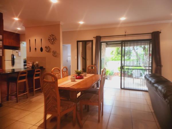 A beautifully manicured garden further enhances the outdoor space, providing a peaceful retreat. The well-appointed kitchen includes a separate scullery to ensure everyday functionality, while a double garage offers secure parking and easy access. Situated in a secure estate close to all amenities, this property is an excellent choice for families or anyone seeking a vibrant community lifestyle.