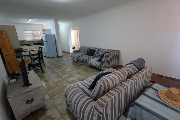 A contemporary two bedroom, two bathroom first floor apartment located in Monte Vistas Gateway Manor. Ideal for a young couple, this apartment boasts an open plan layout with a modern granite counter kitchen, a dining space, and a lounge that opens through sliding doors with railings, giving the home a light and roomy atmosphere. The geyser operates on a hybrid system, using 50% solar power and 50% electricity. Electricity is prepaid and it also includes a chic carport with space for two vehicles.