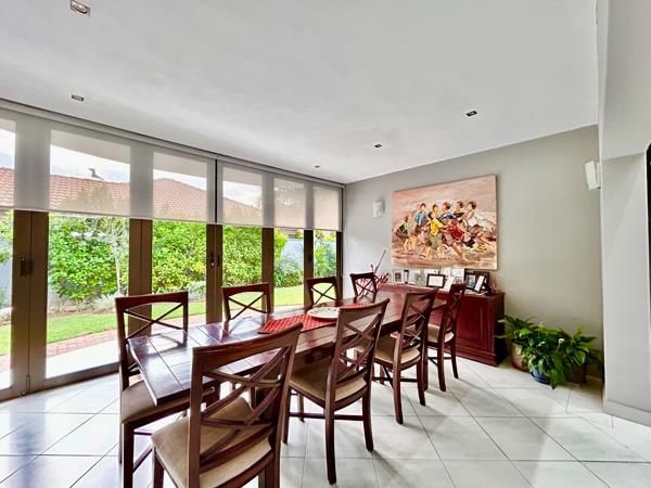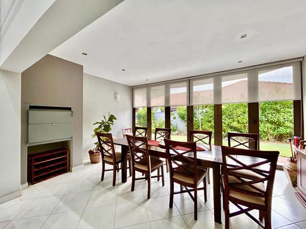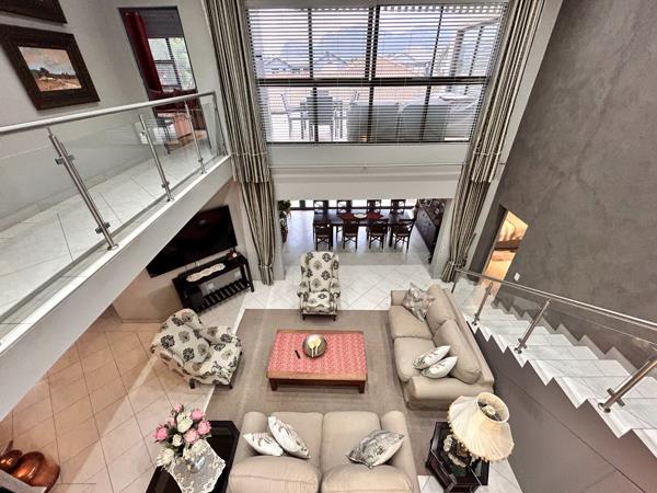 This stunning luxury property features seven spacious bedrooms, five within the main house, each boasting its own en suite bathroom, and two in a separate flatlet with two additional bathrooms. The heart of the home includes a modern kitchen with a wood island, double door fridge, wine rack, and glass cupboard, complemented by a scullery that accommodates three appliances. An inviting enclosed patio opens to a lush garden and a unique man cave with a braai area.