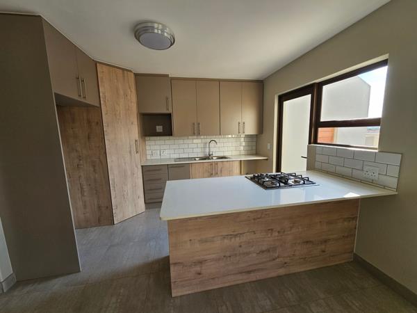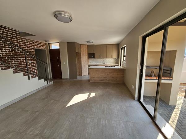 Beautiful brand-new home situated in La Camargue Estate.. Located in the popular La Camargue Estate, this modern 4-bedroom home with open-plan living areas, a lovely kitchen and a fourth bedroom with en-suite bathroom, on the ground floor. A double garage and patio with a braai area overlooking a well-sized garden.