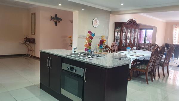 As you enter this beautifully designed home, you are welcomed by spacious, open-plan living areas that radiate warmth and invite you to relax and unwind. The main living room, with its cosy wood fireplace, sets the tone for those chilly evenings, while large windows let in plenty of natural light and offer views of the lush greenery outside. The modern kitchen, complete with granite countertops, melamine finishes, and a central island, is perfect for preparing meals for family gatherings or hosting friends for dinner. Adjacent to the kitchen is the scullery, with its dishwasher connection, keeping everything neat and organised.