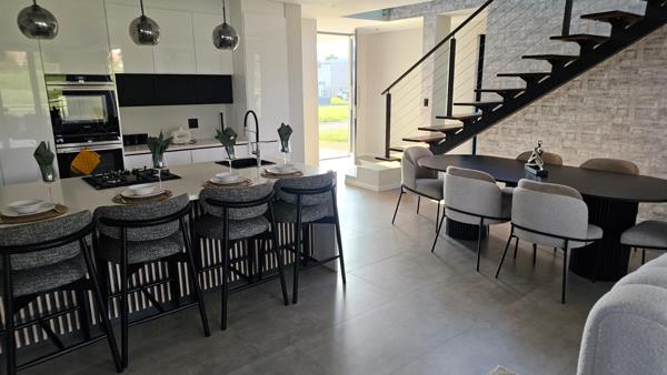 Step into light-filled open spaces with a seamless flow from the modern kitchen and living areas to the outdoor entertainment zone, complete with a sparkling pool, built-in braai and wet bar. A cosy pyjama lounge adds an extra layer of comfort upstairs, ideal for family relaxation or as a private retreat.