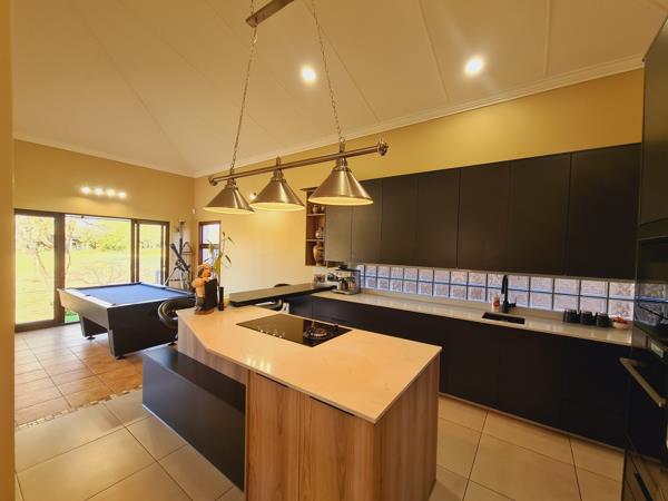 The kitchen has been updated with a sleek, modern design, seamlessly flowing into the scullery, and connecting to the open-plan living and entertainment area.