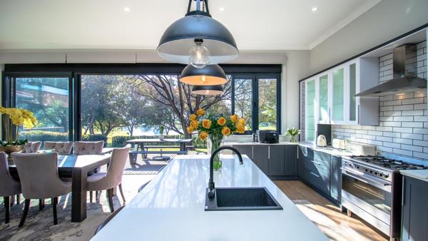 A contemporary, well-appointed kitchen anchors the open-plan living space, ideal for both relaxed family time and stylish entertaining.