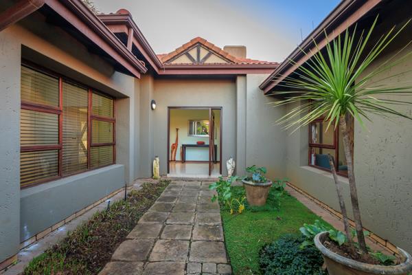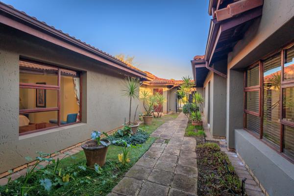 Sit on the patio and take in sweeping north facing views of the Magaliesberg Mountains and Pecanwood Fairways. An ideal backdrop for relaxed family gatherings and stylish entertaining. This open plan layout is thoughtfully designed, with an entertainment zone at the heart, that seamlessly links three open concept living areas. The family lounge is perfect for casual downtime, with stackable doors that open to the garden, creating a seamless indoor-outdoor flow. For cooler evenings, the formal lounge offers a cosy retreat with a built-in gas fireplace. The main bedroom is privately located, featuring its own secluded courtyard. On the opposite side of the home, two additional bedrooms share a full bathroom. A private study with a separate entrance offers a quiet dedicated workspace that can easily be adapted as a fourth bedroom or staff accommodation, depending on family needs.