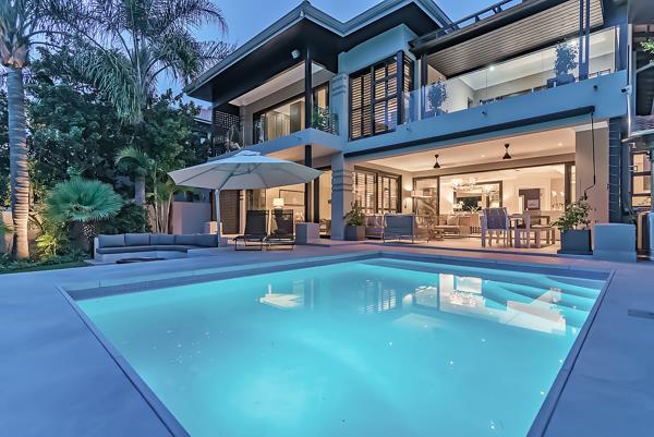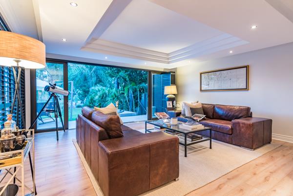 This beautifully appointed double storey home, with modern, upmarket finishes throughout, will captivate you as you enter the property. Upmarket finishes throughout & the most spectacular view over the internal dam with the Magaliesberg Mountains as the backdrop. As you enter the home, you''re welcomed by well planned open-plan living area that emphasizes natural light and a serene garden setting, with large sliding doors that seamlessly connect the interior to the outdoor living areas. The covered patio is ideal for relaxing or entertaining around the pool. Enjoy sundowners around the firepit while watching the sunset behind the mountains.