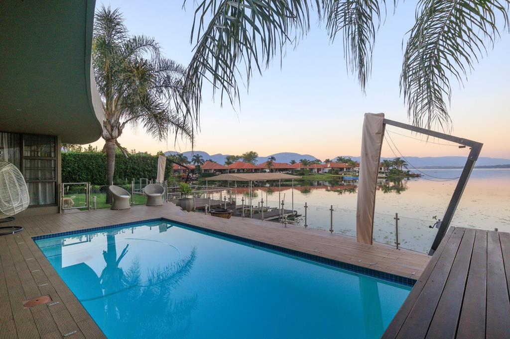 Experience the epitome of luxury living in this exquisite one-level waterfront residence, boasting unparalleled views overlooking the tranquil Hartbeespoort Dam and the majestic Magaliesberg mountain range. This modern masterpiece is adorned with top-of-the-line finishes, offering a world-class entertainment area perfect for hosting lavish gatherings and creating unforgettable memories.