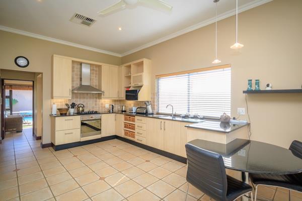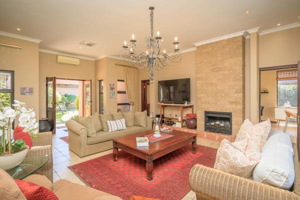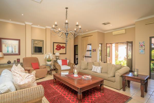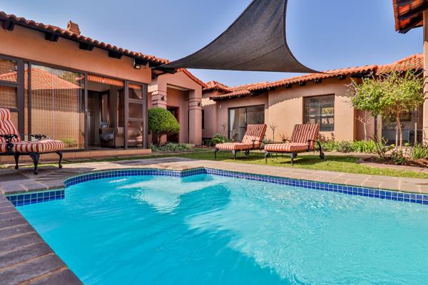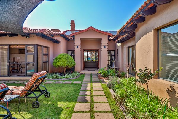 EXCLUSIVE SOLE MANDATE - Nestled within a secure golf estate, this beautifully maintained home offers tranquil living surrounded by manicured gardens and scenic views of the Pecanwood 11th fairway and Magaliesburg Mountains. The spacious open-plan layout includes a spacious lounge that seamlessly flows through stacking doors onto a covered patio, perfect for entertaining or relaxing with the family. The kitchen boasts granite countertops, a generous pantry, a separate scullery and a dining area making it both functional and stylish. The private entrance for the two additional bedrooms lead out to the quiet courtyard and secluded pool. Ideal for couple, family with grown up children or as a luxurious weekend getaway.