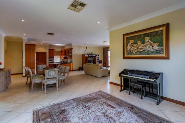 The large open-plan living- and dining areas integrate perfectly with the kitchen and the covered patio with braai and swimming pool making this the perfect family home. The Breeze Air and underfloor heating make for comfortable living all year round.