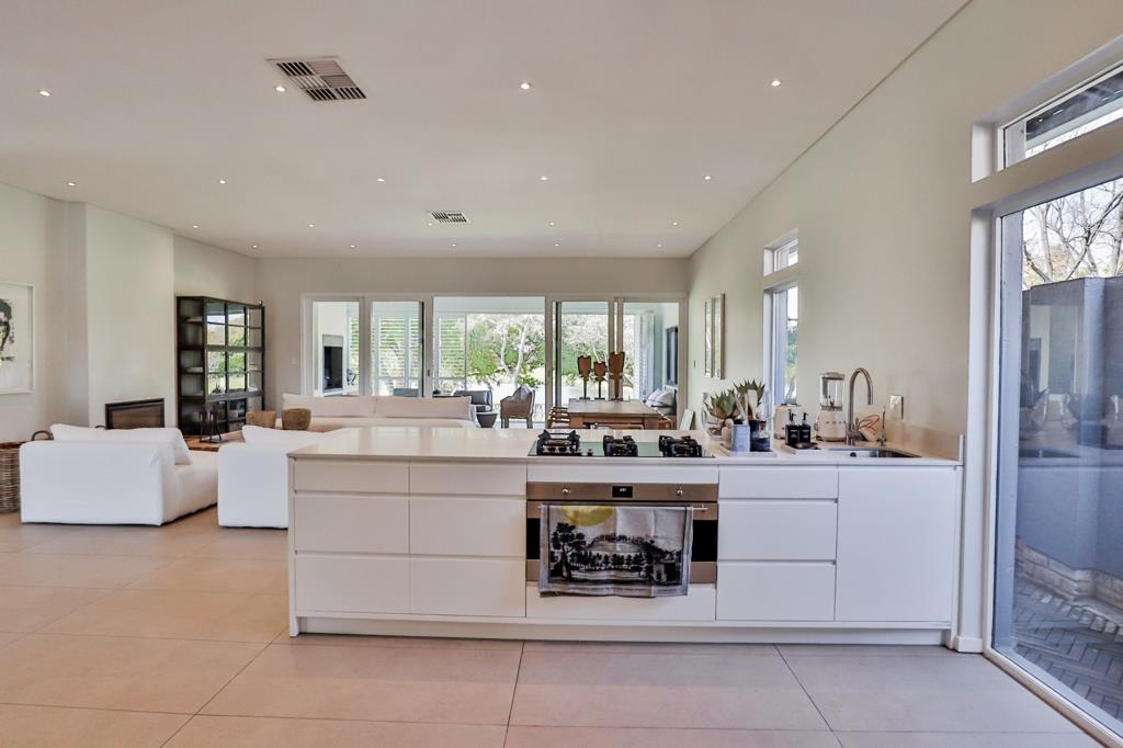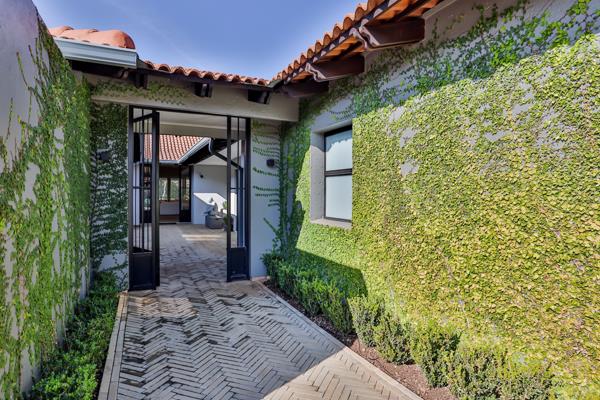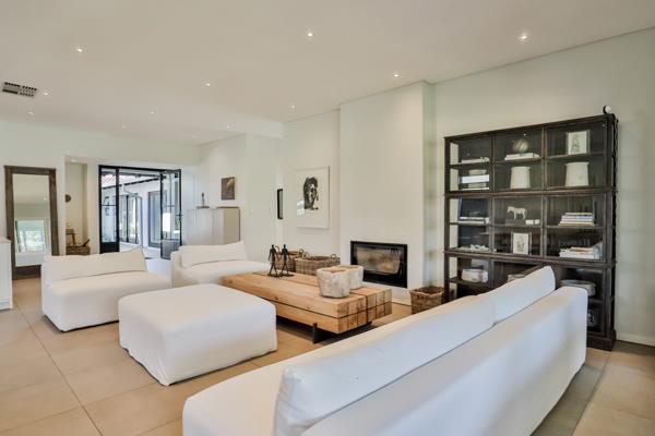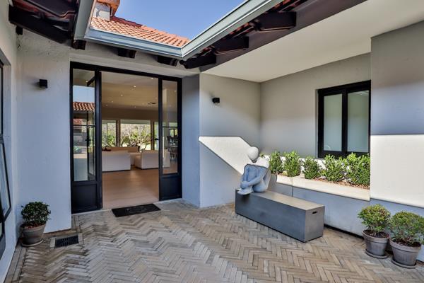 An inviting covered patio with aluminium shutters & a built-in braai opens out to the fenced garden and contemporary pool all with a spectacular view.