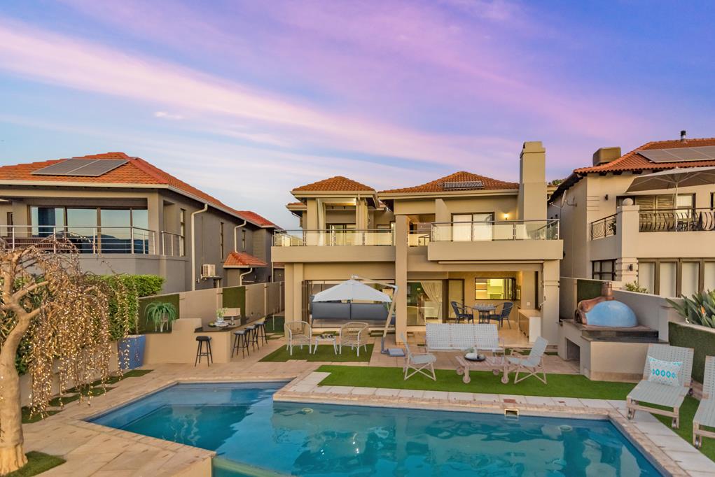 Upstairs accommodates the luxurious master bedroom plus the additional 3 en-suite bedrooms with a spacious balcony with the most magnificent view to enjoy, while sipping your coffee in the morning or sundowners in the evening.