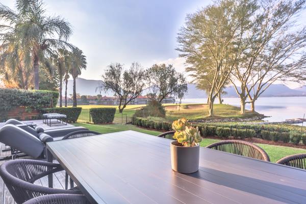 JOINTMANDATE! This modern, tastefully renovated open plan home with spectacular views over Hartbeespoort Dam and the signature 13th green of the Jack Nicklaus designed golf course. The contemporary open plan living area combining the living room, dining room, built in bar area and kitchen, prioritizes fluidity and functionality with a seamless transition to the outdoors. The outdoor decked patio and sparkling pool is an inviting space for relaxing and entertaining family and friends and this property offers direct access to the dam. 2 en-suite bedrooms with bedroom 3 and 4 sharing a jack n jill bathroom. An additional flatlet with a kitchenette and bathroom which could be used as a 5 bedroom, domestic accommodation or a work from home office. Some extra''s include evaporative cooling system, combustion fireplace, inverter back up system, gas hob, combustion fireplace. double garage and additional off street parking. Call us today for a private viewing!