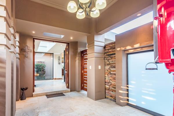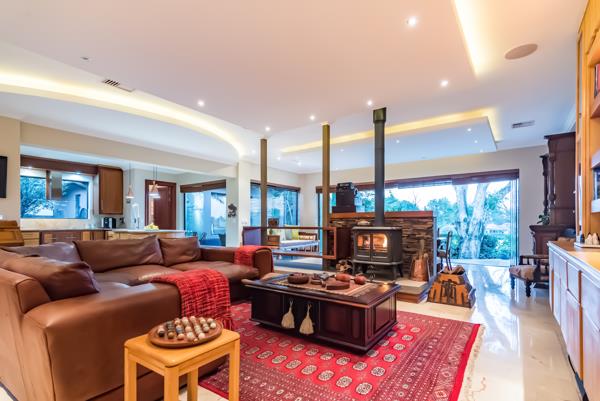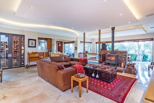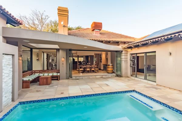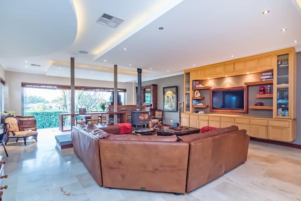 EXCLUSIVE MANDATE. Meticulously designed with every feature one could wish for in a family home! The timeless craftmanship gives one a feeling of living in a suburban home rather than in an estate. Spacious open plan living & kitchen area with the entire front of the home opening with frameless stacking doors out onto the various patios areas & beautiful rolling lawn with elevated views over the golf course. Magnificent spacious master suite & additional 3 en-suite bedrooms, PJ lounge, study & generous domestic quarters.