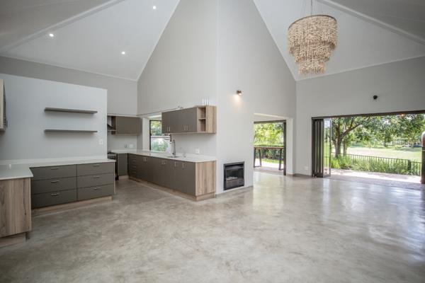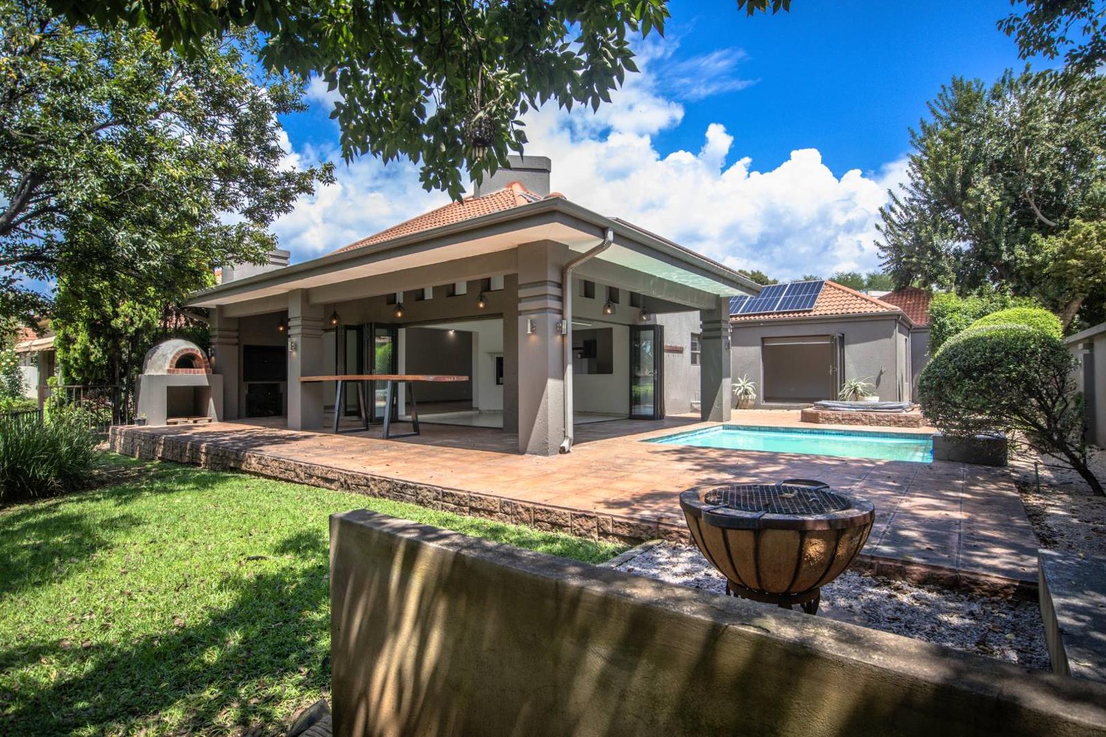 Nestled amidst lush surroundings, this charming home offers the perfect blend of modern elegance and functional living. Step inside to an inviting open-plan layout, where the lounge, dining area, and kitchen flow seamlessly creating a warm and welcoming space for gatherings and shared moments. The kitchen, featuring sleek Caesarstone countertops, a gas stove with an electric oven, and a convenient scullery, is a dream for culinary enthusiasts who love to cook and entertain. The true highlight of this home is the entertainment living area, designed for ultimate relaxation and enjoyment. Step outside to a sparkling swimming pool, perfect for cooling off on hot summer days. Featuring three bedrooms and two bathrooms, with the main bedroom boasting a newly upgraded en-suite. Prioritizing sustainability, this home is equipped with solar panels and an inverter, ensuring energy efficiency and cost savings. Additional features include a built-in pizza oven, dedicated golf cart parking, a double garage, and staff accommodationoffering both convenience and luxury in one exceptional home.