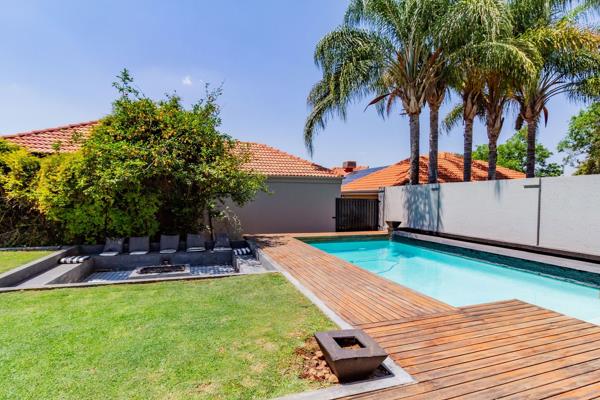 Retreat of Warmth and Tranquillity in Pecanwood Golf Estate. Exclusive Mandate. This inviting home offers a sense of comfort and ease, where every space feels considered and connected to its surroundings. Upon entering, the view to the garden and sparkling pool immediately captures your attention, a tranquil setting that draws you outdoors. The entrance hall leads into a welcoming family and TV room where stack doors open to create a natural flow between the indoors and garden. The generous garden offers a sunken seating area with a fire pit, perfect for relaxed afternoons or quiet evenings spent under the stars.