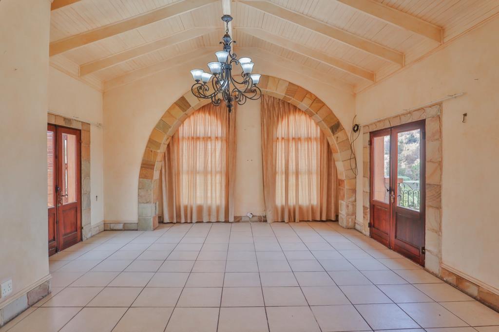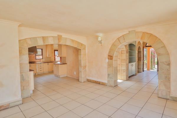 This stunning double-story country-style home features three bedrooms, including two ensuite bathrooms, and an additional two toilets with showers. Nestled in a secure estate at the end of a cul-de-sac, it offers breathtaking views of the Magaliesberg Mountains and a serene dam. The property is enhanced by high-quality fittings, elegant wooden doors, and a beautiful water feature that adds to its charm. Enjoy outdoor living with a swimming pool, a flatlet for guests or extended family, and a braai area on the patio. The open-plan kitchen, complete with a scullery, flows seamlessly into an expansive entertainment area, ensuring tranquility and elegance throughout. Additionally, the home is equipped with a solar geyser for energy efficiency, making it both luxurious and sustainable.