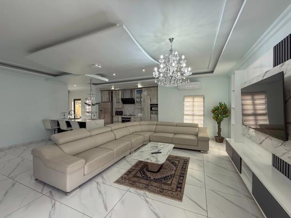 Step inside to discover spacious, open-plan interiors where clean lines and minimalist finishes create a sense of calm sophistication. The living areas flow effortlessly, enhanced by natural light and a serene palette that reflects the homes elegant design. A large, modern kitchen serves as the heart of the homefully equipped with quality finishes and a separate scullery for added practicality.