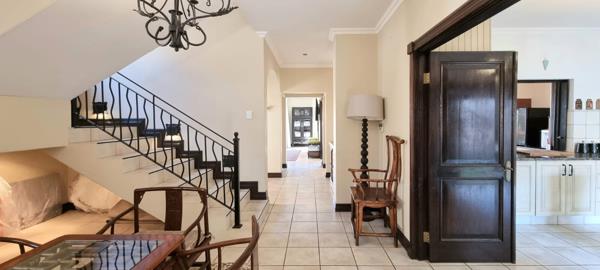 Welcome to this beautiful double-storey home perfectly positioned on the water in the sought-after Estate DAfrique. Designed for relaxed, elegant living, the home opens with a warm entrance hall leading to a stylish dining room, inviting lounge, and family TV room. A modern kitchen with a separate laundry area ensures everyday convenience, while the braai room, patio, and deck flow seamlessly to the outdoors ideal for entertaining with the dam right in front and breathtaking mountain views behind. A guest toilet and reception area complete the ground floor, blending comfort with sophistication. Upstairs, find three spacious bedrooms, including a main ensuite, and a balcony that showcases beautiful panoramic views of both water and mountains.