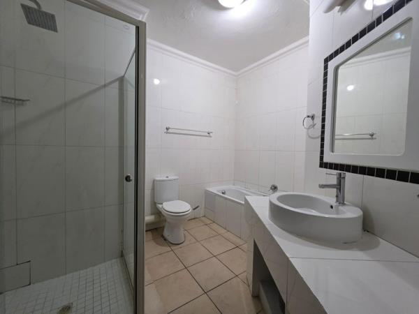 This neat and spacious 3-bedroom, 2-bathroom apartment is situated on the ground floor and comes with a small, easy-to-maintain garden. It includes a full bathroom with both a bathtub and a shower unit, along with a lounge and dining room. The kitchen is attractive and well-designed, with a pantry and scullery. The apartment offers a good balance of outdoor space, perfect for enjoying the fresh air without too much upkeep. The open-plan living area is bright and inviting, providing a comfortable space to relax.