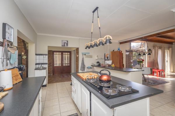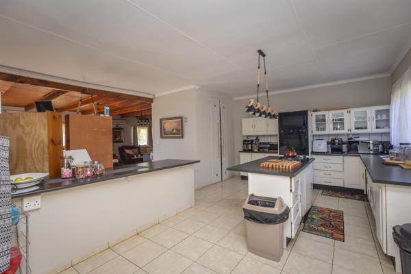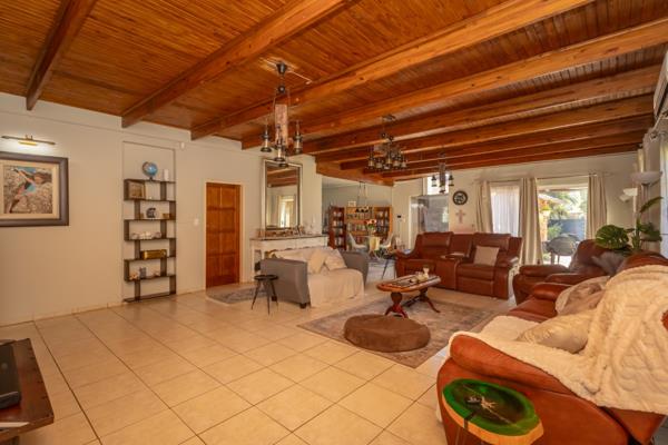 Upon entering the home one is greeted by a very spacious Living area and dining space which leads you into the modern open plan kitchen. From the Kitchen area with scullery and pantry, you are invited to another living space with its own built-in-braai. this area leads out into the lovely garden and pool area, also with an open space lapa.