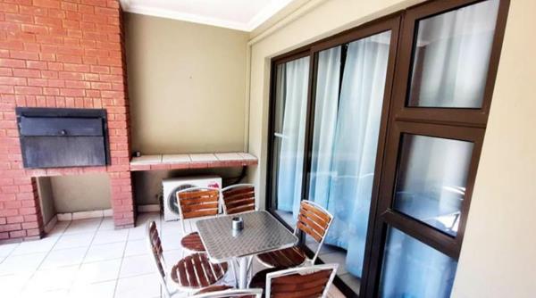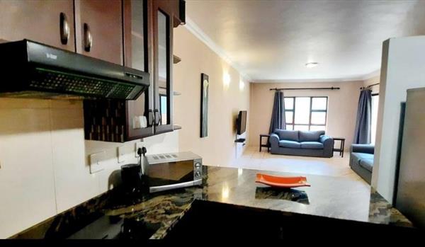 A lovely well sized kitchen with beautiful built in cupboards, overlooking the open plan living area, leading to the patio with a built in braai & a lovely low maintenance garden.
