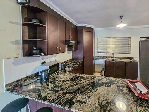 Lovely 2-bedroom apartment in a well located complex. The modern and spacious open-plan living area unit is the perfect find. The units are contemporary and well-located. Open the door to the spacious kitchen and open-plan living area with an aircon and a small patio with a braai. Both bedrooms can accommodate 2 single beds or a king-size bed and share a full bathroom.