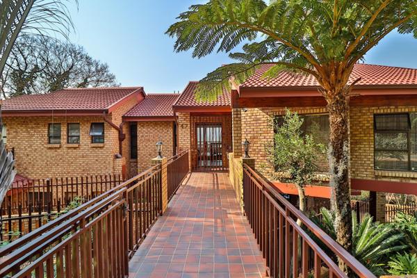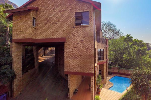 The second level consists of the kitchen with a separate pantry, scullery and breakfast-nook, the dining area and an entertainers dream living room with a fireplace and a built-in sleeper-bar that offers a scenic view. Both the dining area and living room walks out onto a patio overlooking the Magalies-mountain range and dam as well as your own luscious well established garden and crystal clear swimming pool.