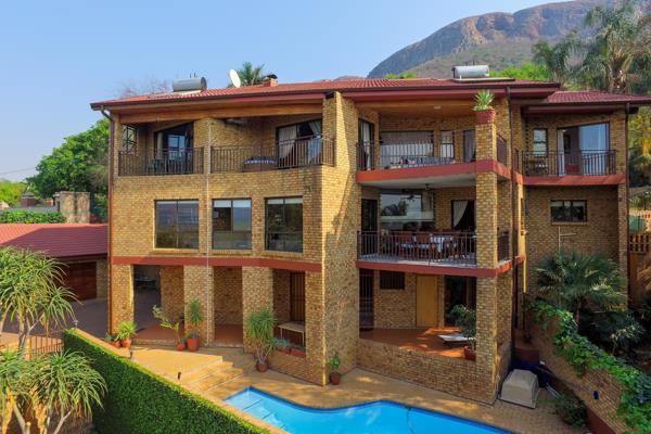 Features include 3 magnificent levels. The top level being the main bedroom with an en-suite bathroom as well as three guest bedrooms that all walk out onto a patio with breathtaking views of Hartbeespoortdam as well as a stunning entrance, foyer and study.