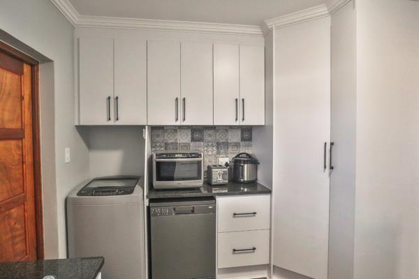 An 18L Bosch gas geyser supplying hot water to the main bathroom, a 19L gas bottle, a blue filter water system, and a 5L osmosis filtration system are all protected under the louvre roof. Additionally, there is also a 1000L water tank with a pump and inverter and battery system which supplies the whole house with electricity should you have any power outages or loadshedding excludes the normal geyser. Other extras include a gas stove and two air conditioning units.