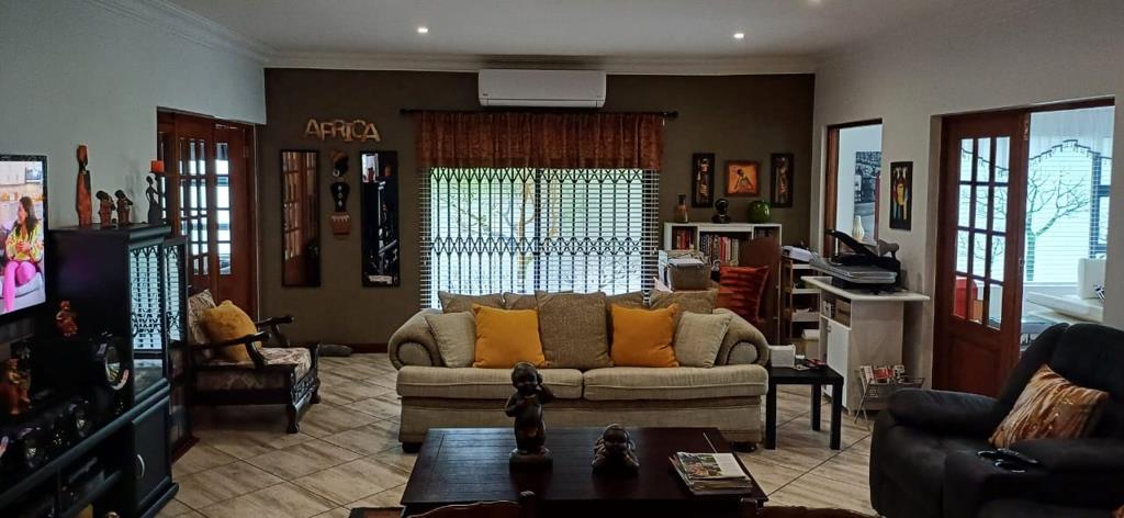 The home''s design emphasizes spaciousness and seamless flow. The open-plan living area, comprising a dining room, lounge, and TV room, integrates effortlessly with a generously sized kitchen, scullery, and laundry. Ample cupboard space throughout ensures practical storage solutions.