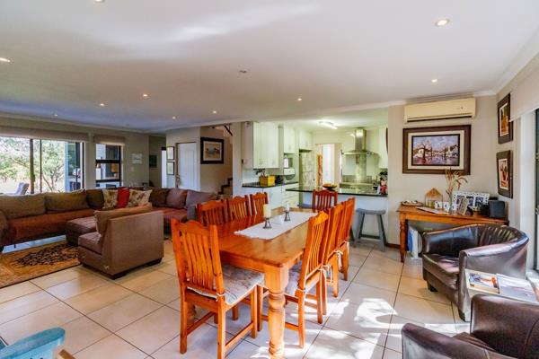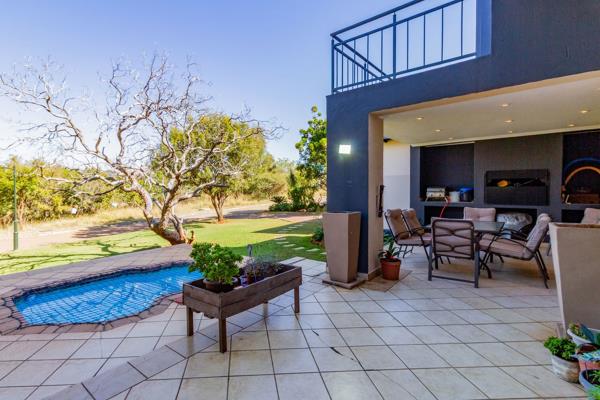 Step outside to your very own entertainers'' paradise: a spacious patio with a built-in braai, overlooking a sparkling pool and lush surroundings. The backyard also includes a boma, perfect for gathering around the fire with loved ones on chilly winter evenings.