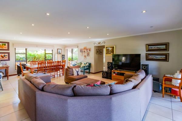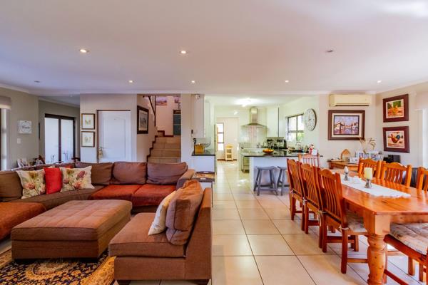 Step inside and be greeted by light-filled, expansive living spaces. The home features a welcoming lounge, dining area, and a gourmet kitchen complete with a 5-burner gas stove and an electric oven, as well as ample preparation space, perfect for any home chef. The scullery and laundry room are neatly tucked away, offering practical convenience while keeping the living area sleek and uncluttered.