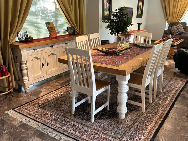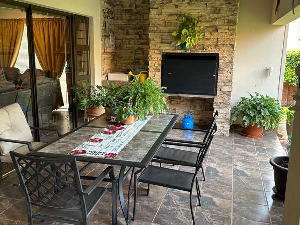Outdoors, a large boma is tucked within the lush garden, perfect for enjoying evenings under the stars. Additional features include a double automated garage, extra parking for up to four vehicles, a Big Blue water filtration system connected to the home, a full irrigation system, and two rainwater harvesting tanks.