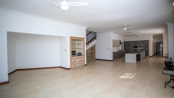 The heart of the home is the open-plan kitchen and living area, which leads seamlessly to a covered patio with a built-in braai, perfect for entertaining. Downstairs also features a guest toilet, study, and a spacious bedroom with an en-suite bathroom ideal for guests or multi-generational living.