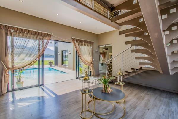 Immaculate Waterfront Masterpiece with Unmatched Elegance. Situated on a 5000m2 waterfront stand with exquisite views, this one-of-a-kind 800m2 home will take your breath away! With high-end finishes throughout the home, a boathouse leading to a private boat ramp and an exceptional entertainment area, you will go far to find this home''s match.