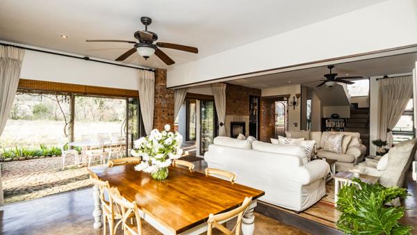 Designed for those who value privacy, nature, and refined living, the home features bright, open-plan interiors filled with natural textures and high-end finishes. The beautifully appointed kitchen is both stylish and functionalan inspiring space for any home cook. The inviting living and dining areas open effortlessly onto a covered patio through stackable sliding doors on two sides, with views of the sparkling pool, lush garden, inland Bass Dam and the majestic Magalies Mountains, its the perfect setting for entertaining or unwinding in serene seclusion.