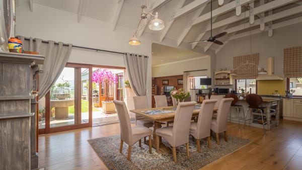 This beautifully appointed 3-bedroom home is nestled in the sought-after The Coves Estate, offering uninterrupted panoramic views of the garden, pivot and the majestic Magalies Mountains. Step into spacious, light-filled open-plan living areas, featuring soaring ceilings, exposed beams, and seamless flow between the modern farmhouse-style kitchen, dining, and lounge areas. Perfect for both relaxed living and stylish entertaining.