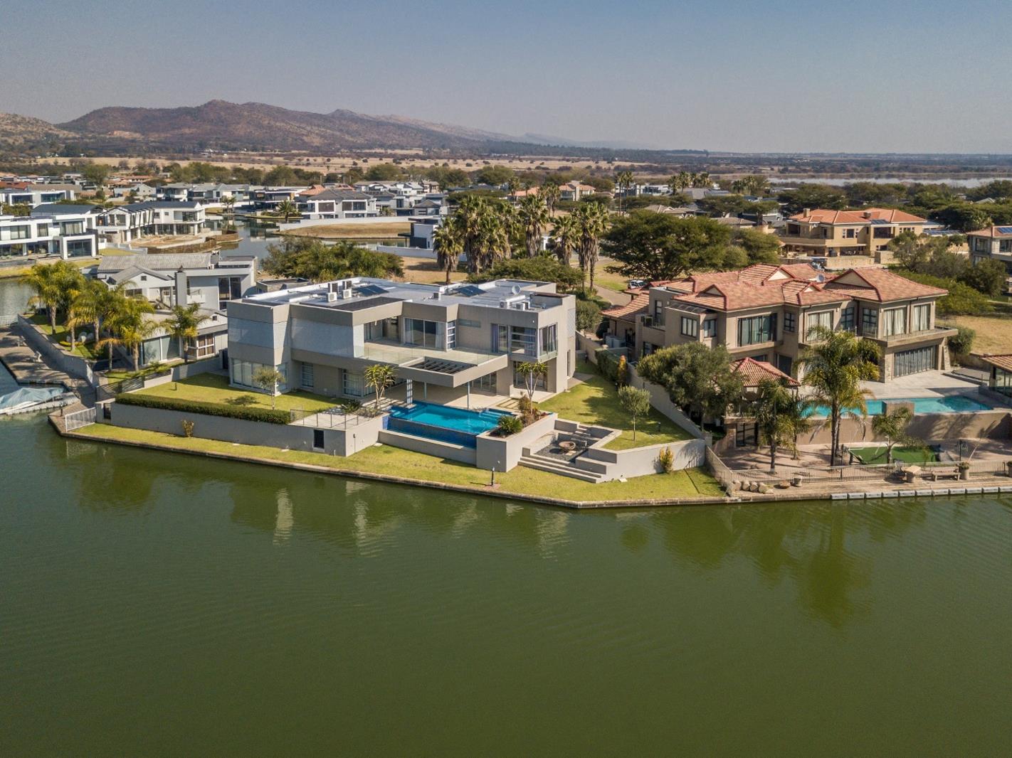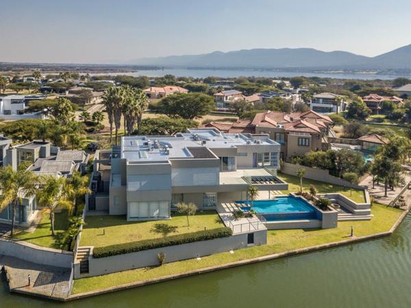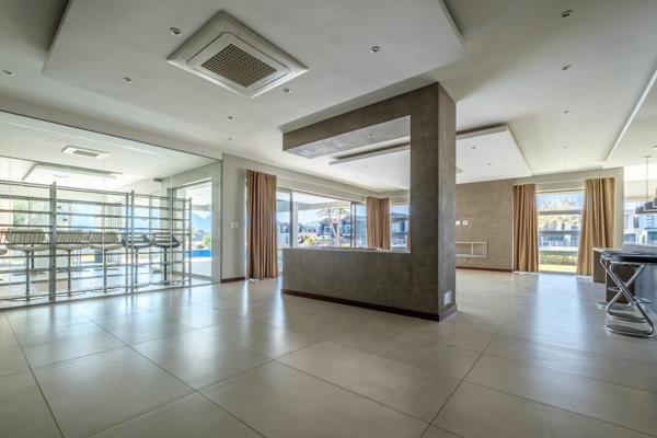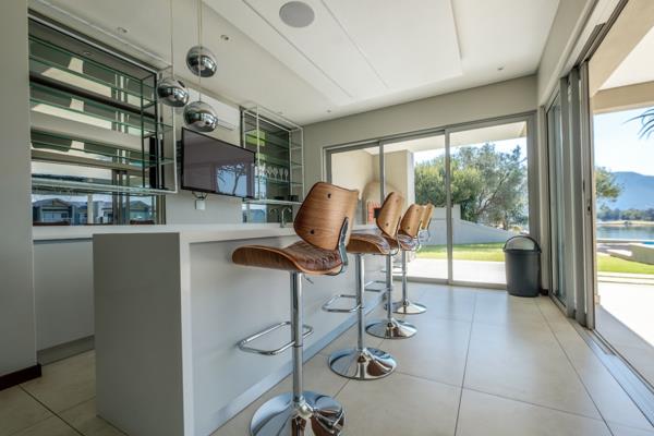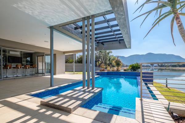 Step into a world of elegance and comfort in this magnificent 7-bedroom waterfront home, perfectly positioned on the canal with breathtaking views of the water and surrounding mountain range. From the moment you enter the inviting hallway, the home draws you toward light-filled living spaces where expansive glass doors open seamlessly onto a covered patio, sparkling pool, and cosy boma, creating the perfect setting for relaxed gatherings and memorable celebrations. The ultra-modern kitchen, open-plan lounge, dining area, and stylish bar are enhanced by a glass-encased wine cellar and charming al fresco pizza space, making entertaining an absolute joy.