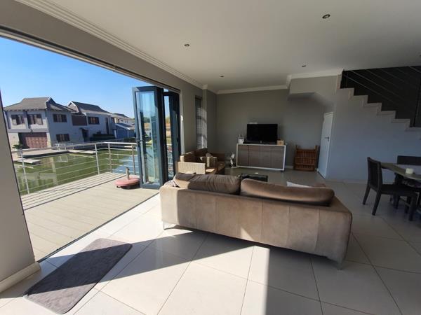 Main bedroom overlooking water canal and ultra-modern bathroom makes this an amazing buy.... enclosed patio courtyard braai area ideal for entertainment.