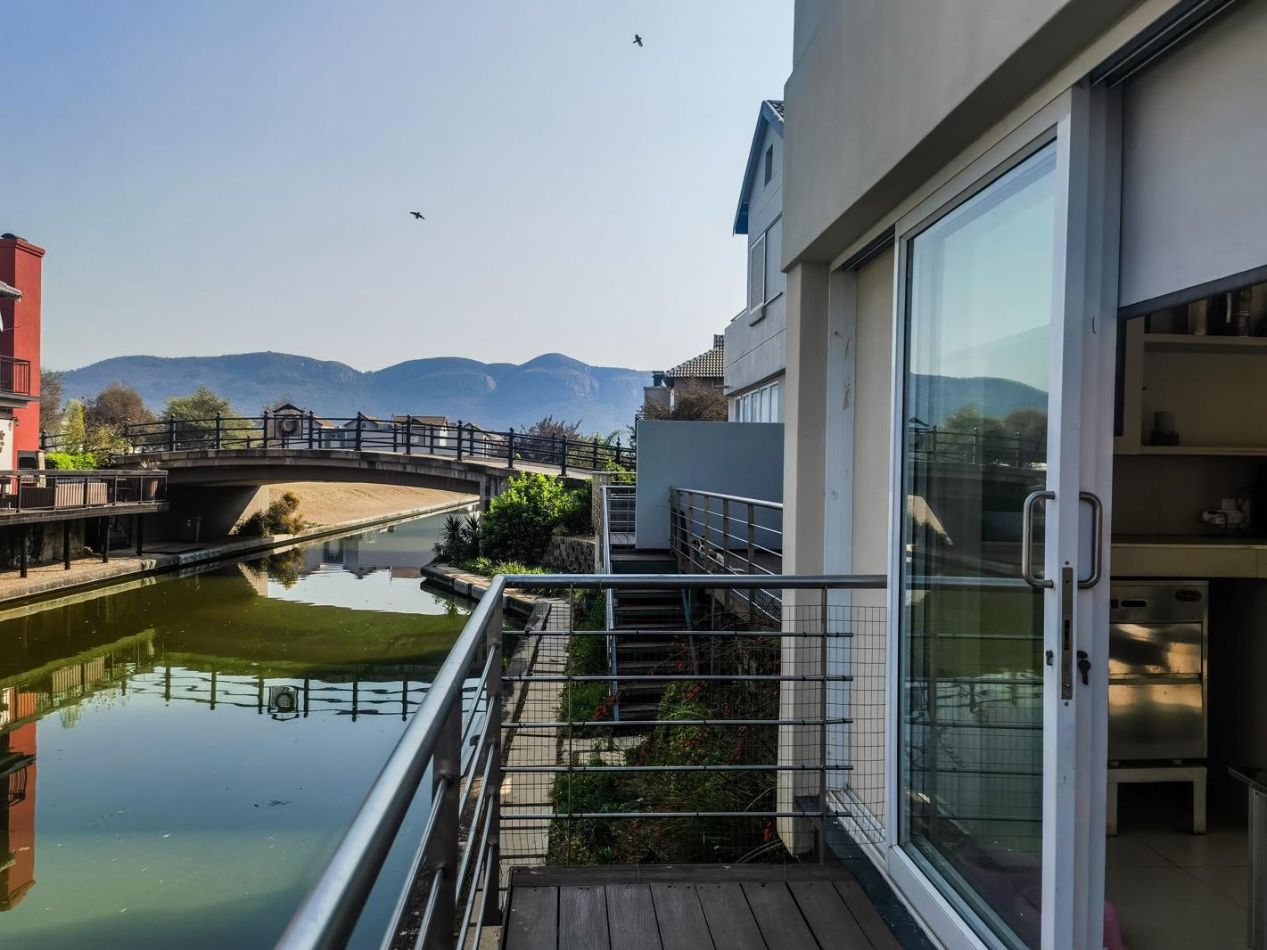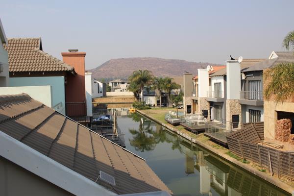 Welcome to this exquisite modern retreat at The Islands Estate, Hartbeespoort. A private side entrance leads you into expansive open-plan living areas, graced with double-volume ceilings that evoke a profound sense of openness and sophistication. Adjacent to the living spaces, a generous courtyard with sliding door access beckons. This outdoor oasis features artificial grass and a covered braai area, ideal for entertaining loved ones while soaking in the breathtaking views of the canals and majestic Magalies Mountains.