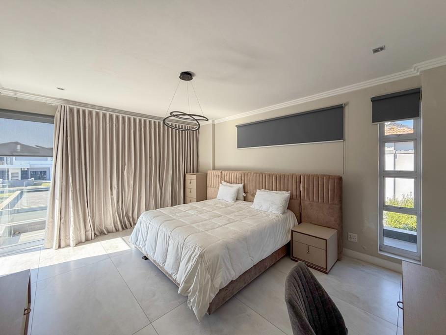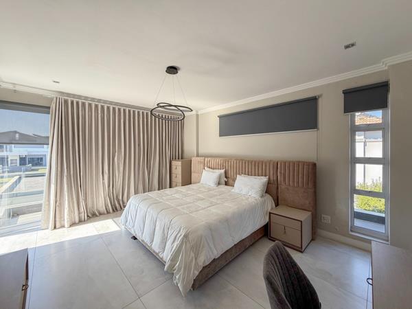 Offering five generously sized bedrooms, three of which are en-suite, this home caters to both comfort and convenience. Two bedrooms are situated on the ground floor, while the upper level includes a cosy pyjama lounge and three additional bedrooms, each with sliding doors to the outdoors. Some enjoy balconies with sweeping views of the Magalies Mountains and tranquil canal.