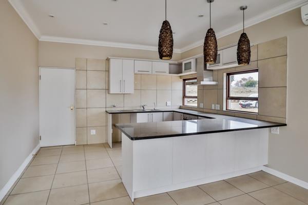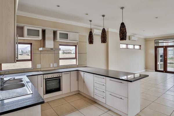 The open plan kitchen has granite tops, plentiful cupboard storage space, the air-conditioned living area is spacious connecting to the outside patio with build-in braai through wood stacker doors, here you will relax and sip cocktails with the most amazing views