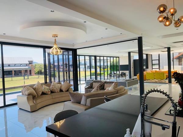 Welcome to this stunning 6-bedroom, 6-bathroom residence, located in the exclusive Islands Estate. This exceptional property, boasts an impressive four garages, and is situated on a canal, offering a serene waterfront setting.